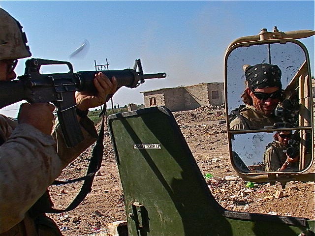 [Self-portrait with U.S. Marines during Operation Phantom Fury or The Second Battle of Fallujah, November 2004.]